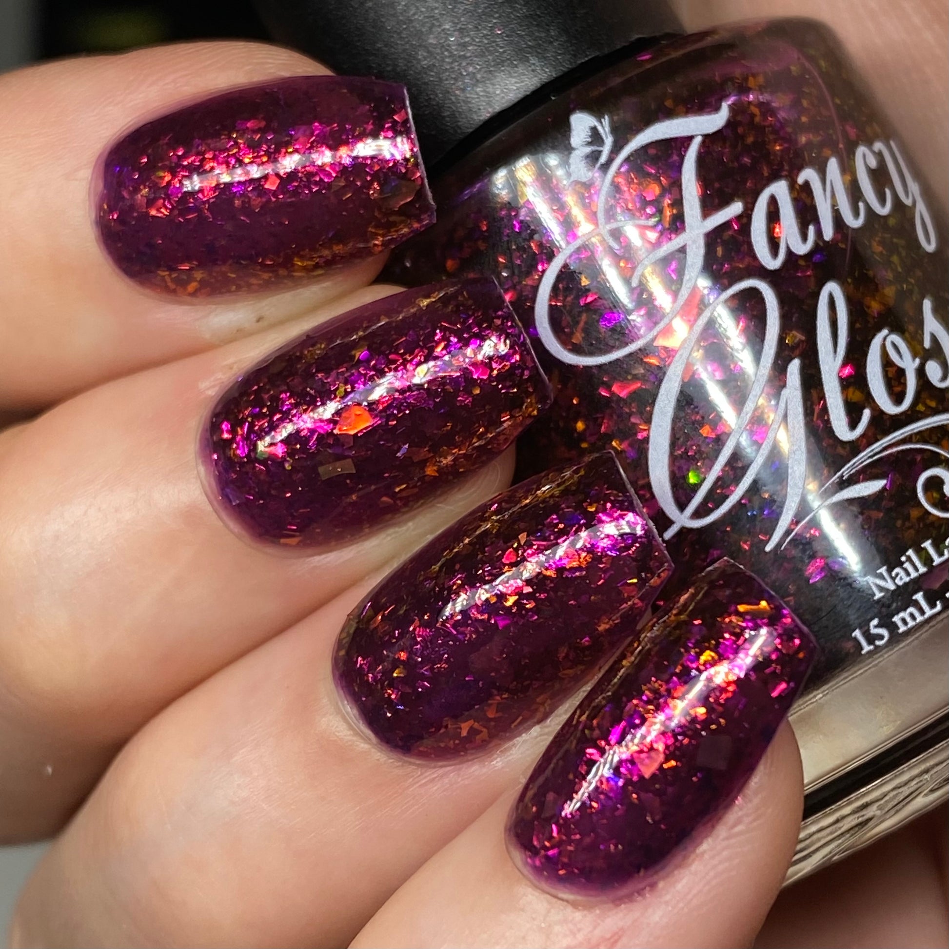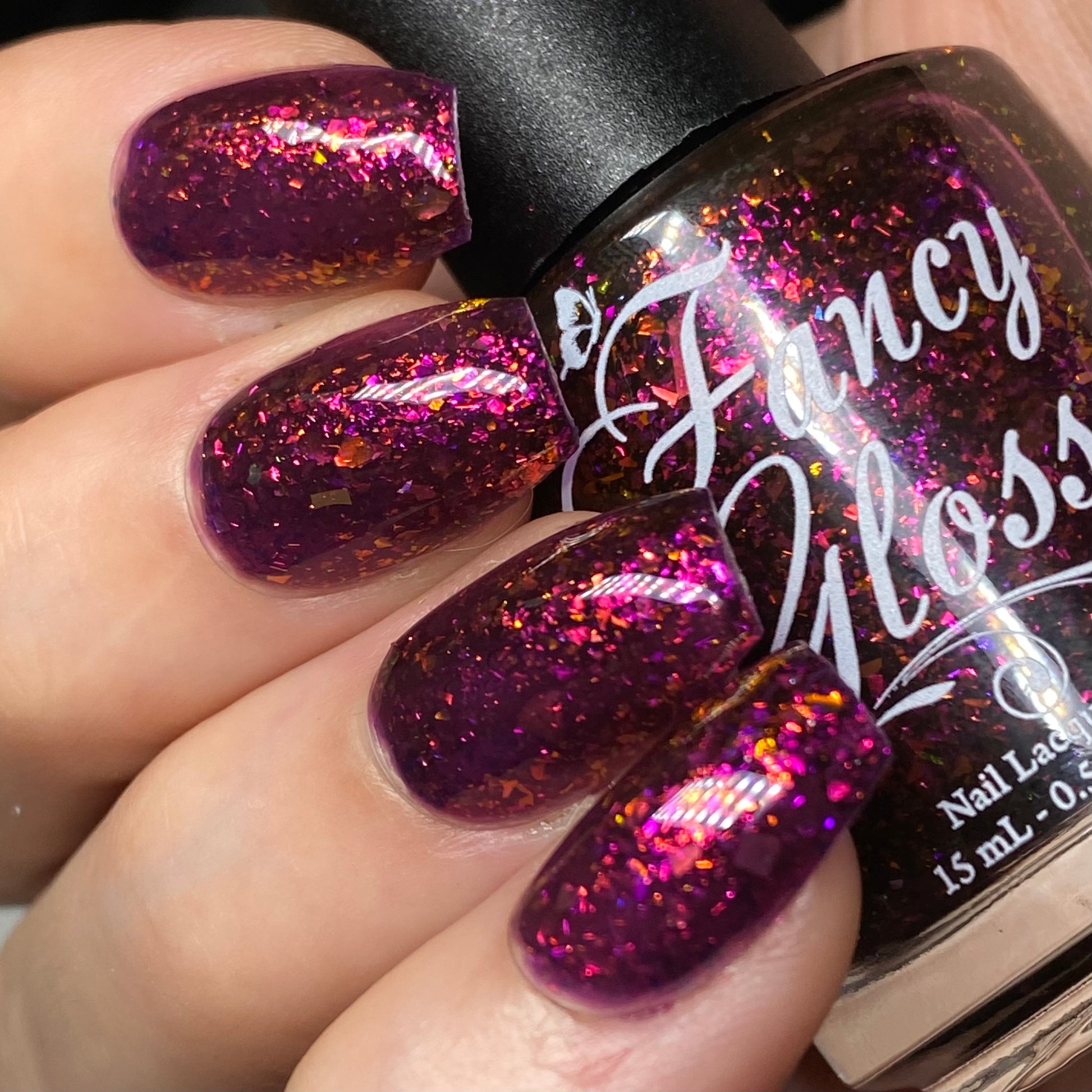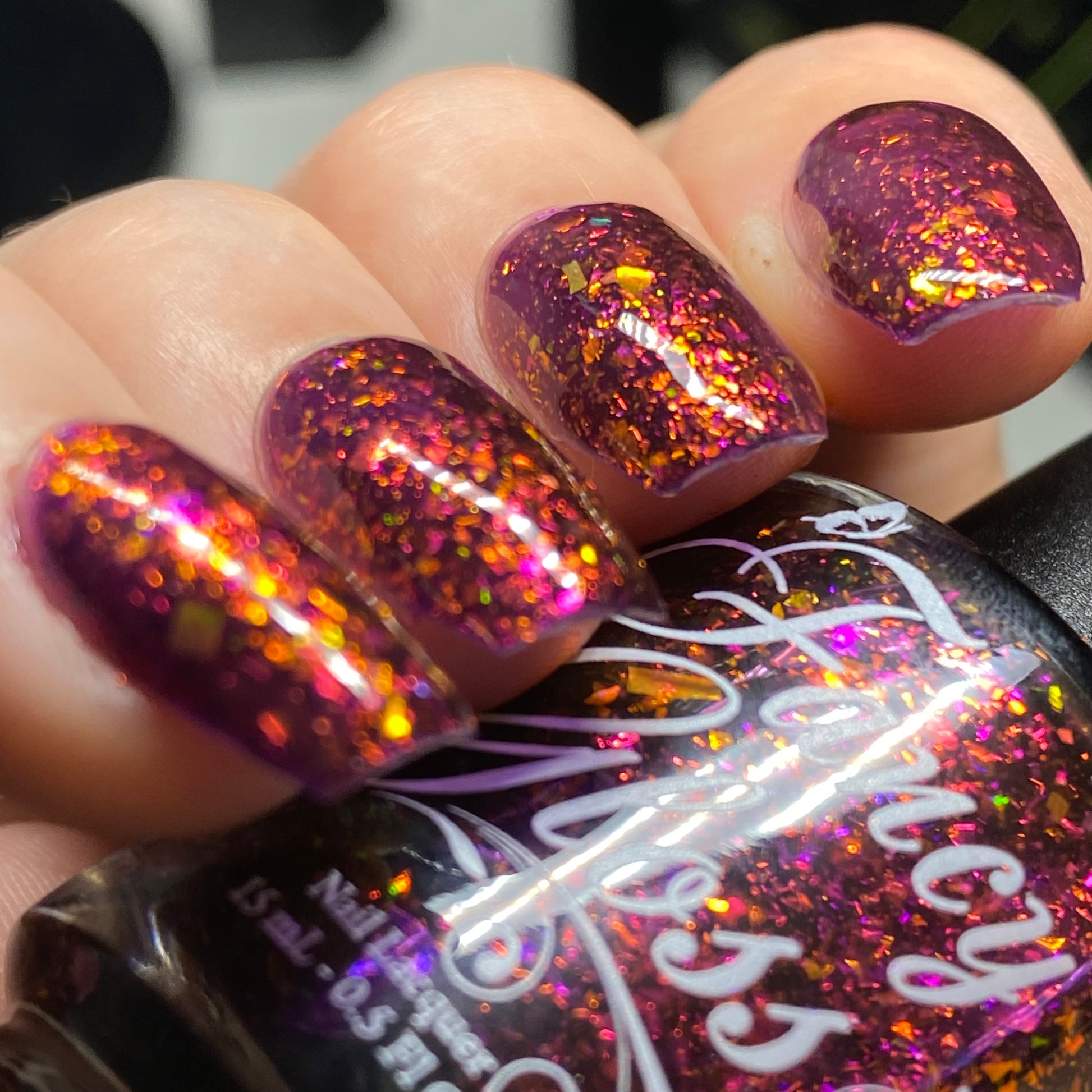 Plum base packed of pink/purple/green/copper/gold and copper/red/green shimmer.