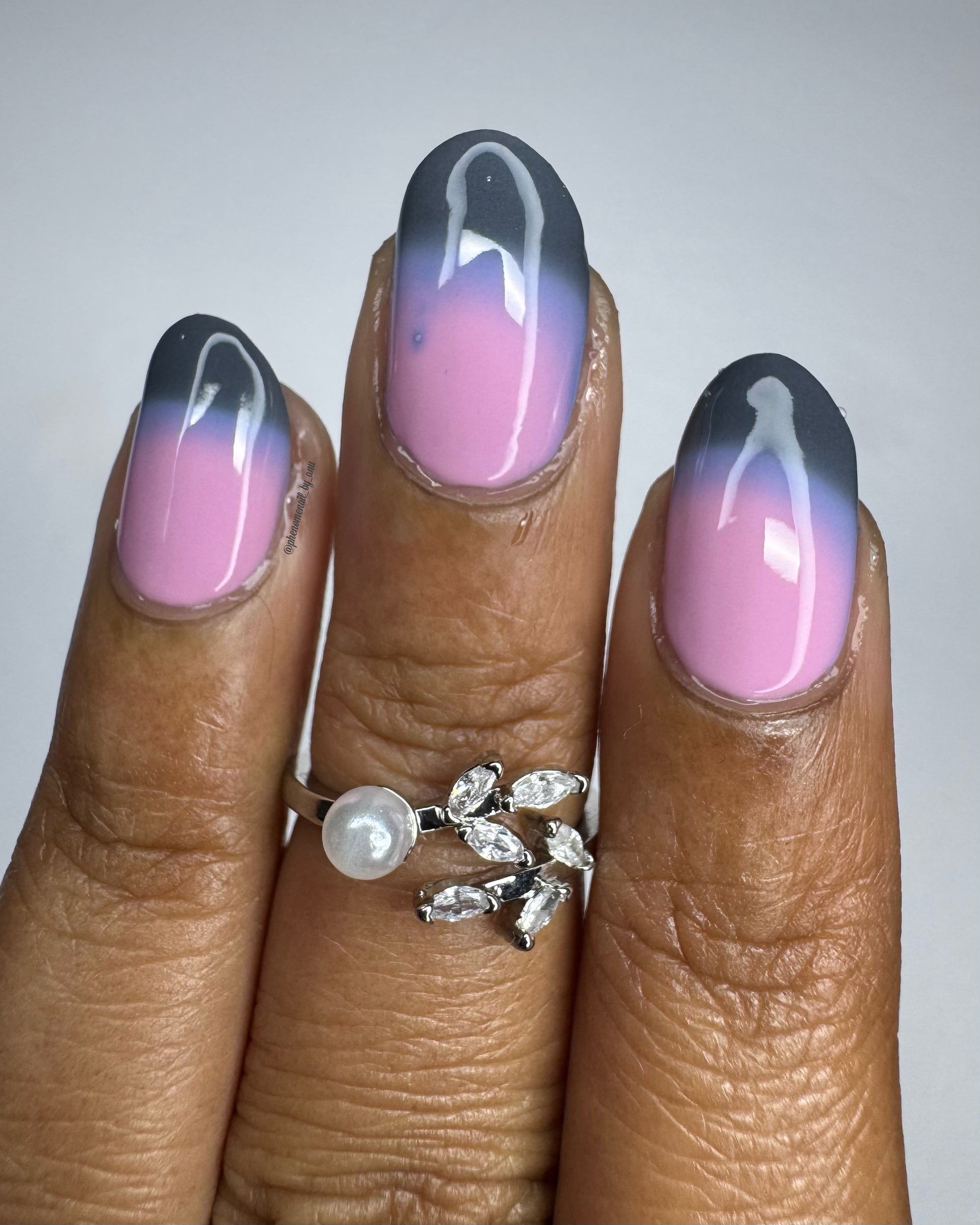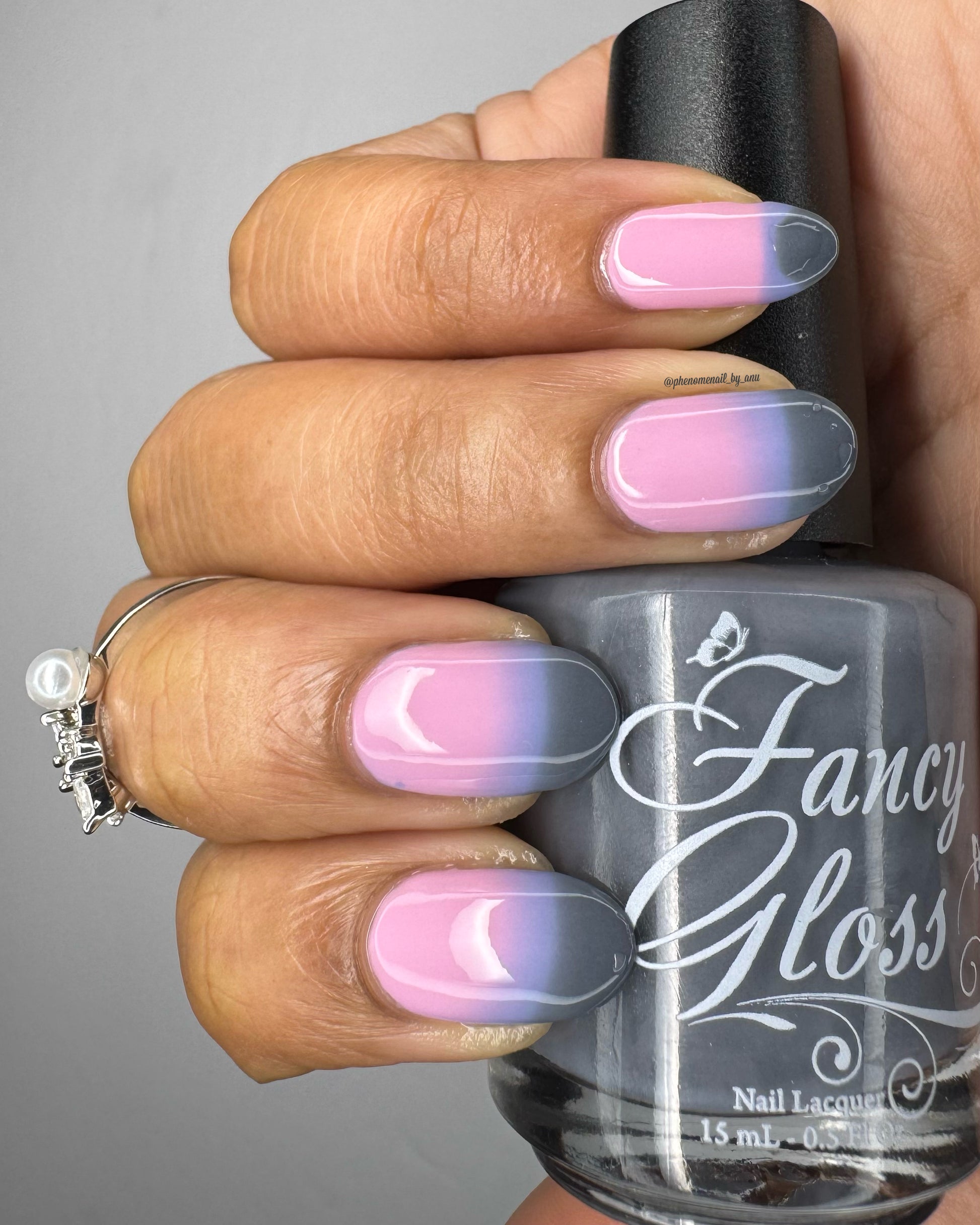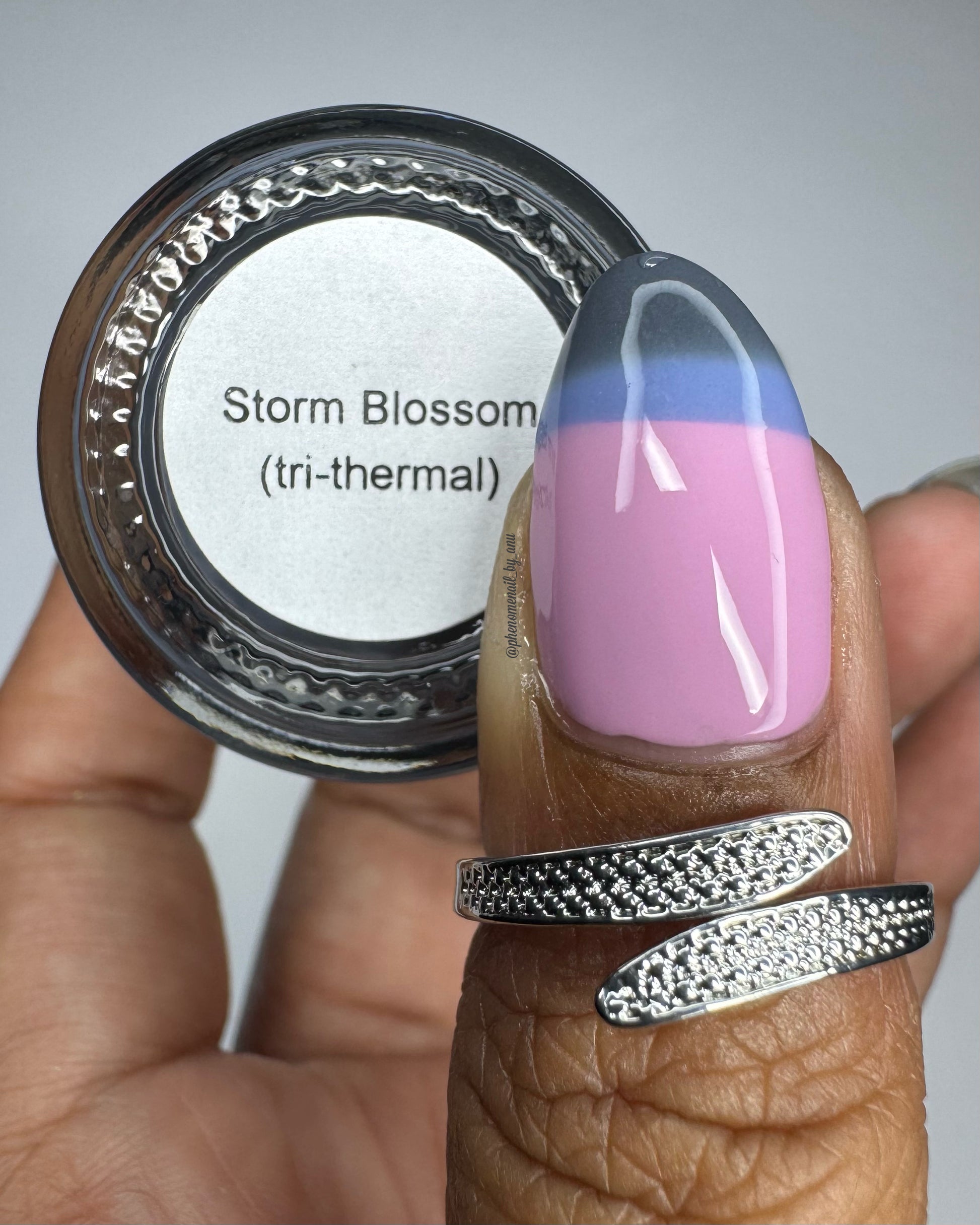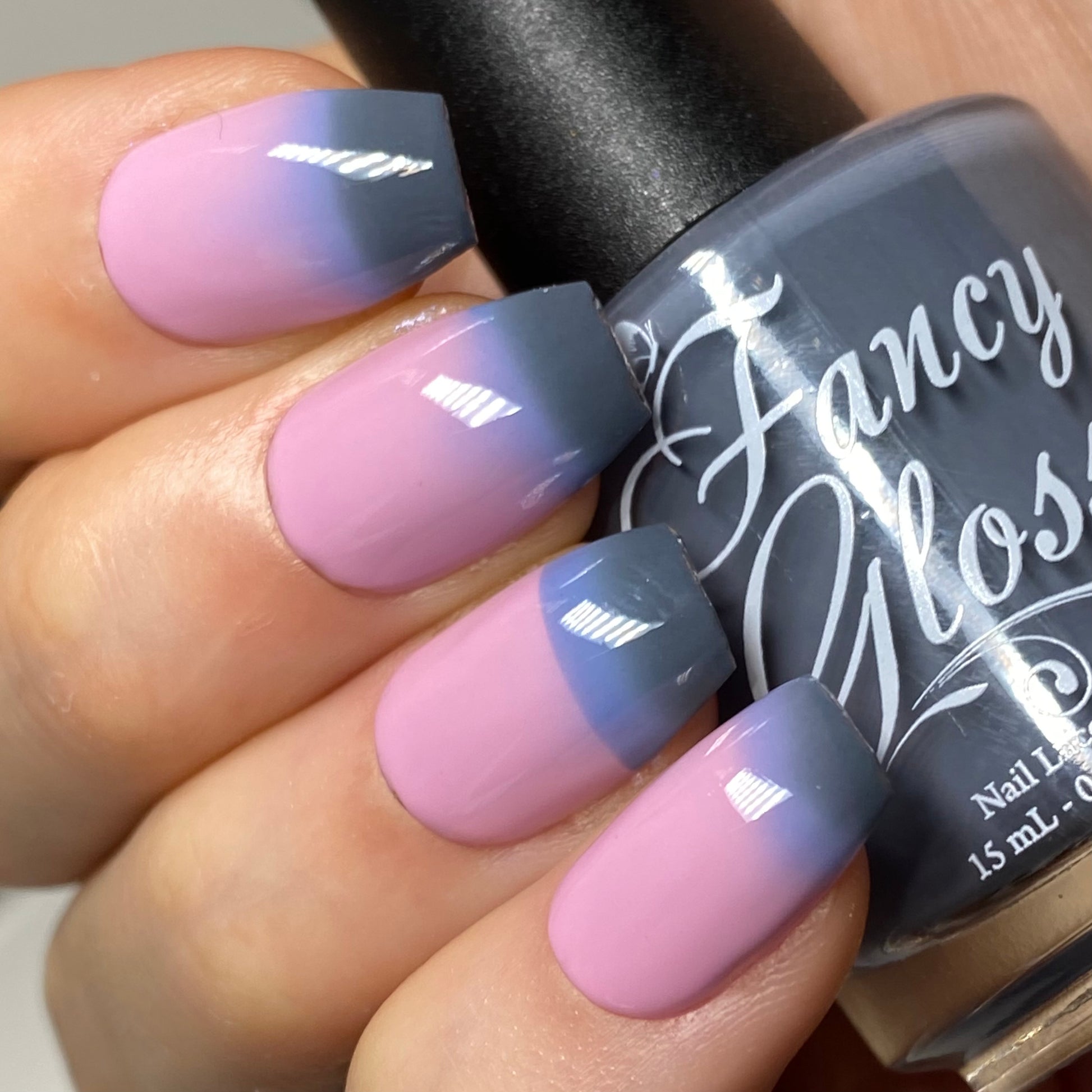 This tri-thermal changes from dark grey (cold) to periwinkle (warm) to pink (warmer)